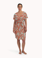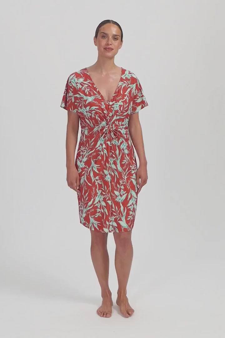 Het Rusty Rose Twist Strandjurkje is een luchtige, stijlvolle cover-up gemaakt van comfortabel badkledingmateriaal. Het jurkje is perfect voor op het strand of bij het zwembad en biedt een glamoureuze, zomerse uitstraling dankzij de glitter roodbruine stof met turquoise accenten.