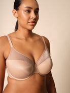 De hoog gesneden cups creëren een natuurlijk liftend effect en accentueren het decolleté met een vrouwelijke V-halslijn. De transparante bovenrand zorgt voor een verfijnde uitstraling, terwijl de U-vormige rugconstructie extra ondersteuning biedt.