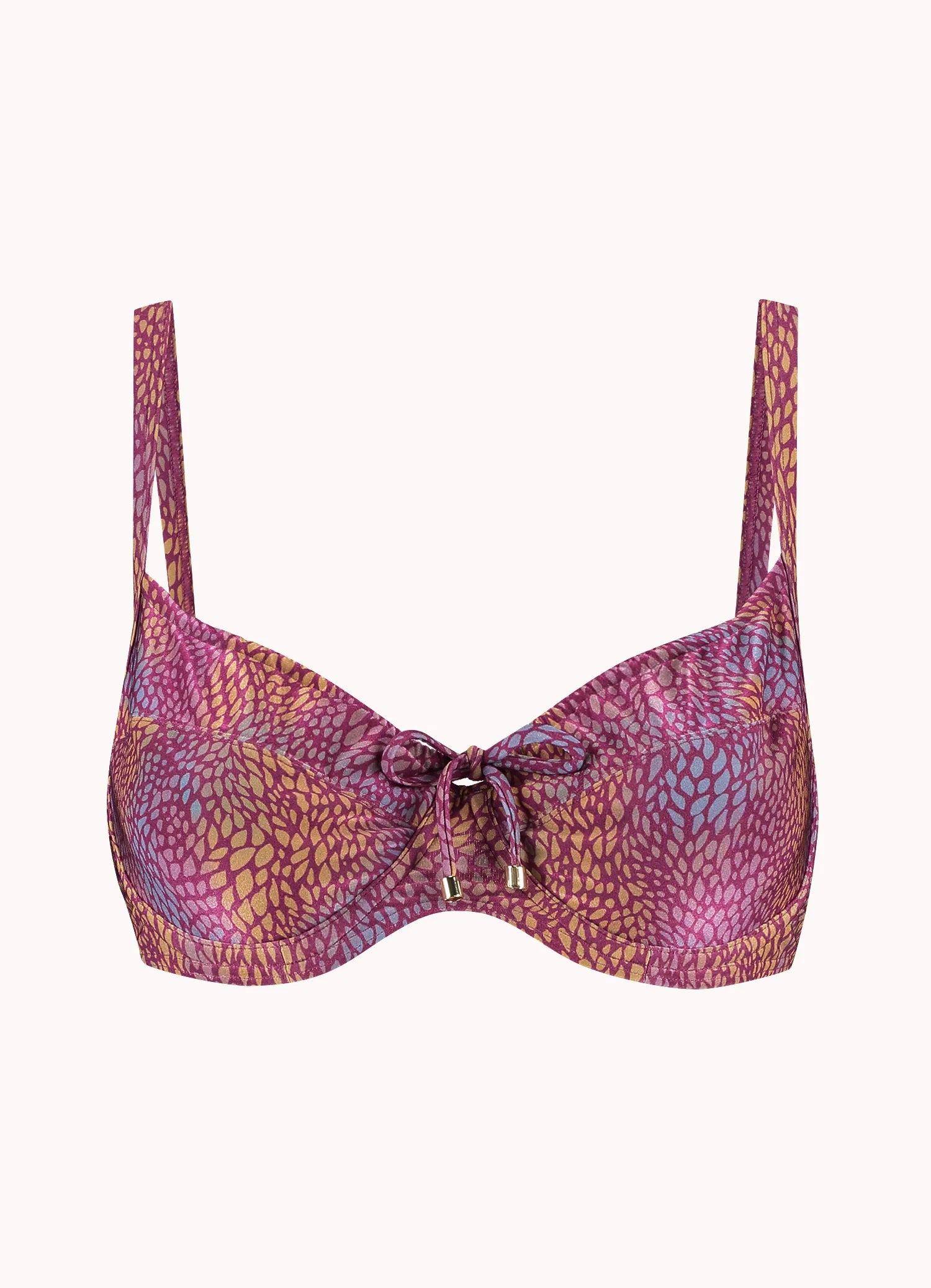 Bikinitop met beugel en verstelbare koordjes – bordeauxrood multicolor print