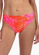 De meerkleurige print in roze en oranje tinten geeft het broekje een frisse, zomerse uitstraling. Dankzij de fijne stretch sluit het model mooi aan op het lichaam. Perfect te combineren met de bijpassende bikinitop uit dezelfde printserie of met een effen top voor een speelse mix & match look.