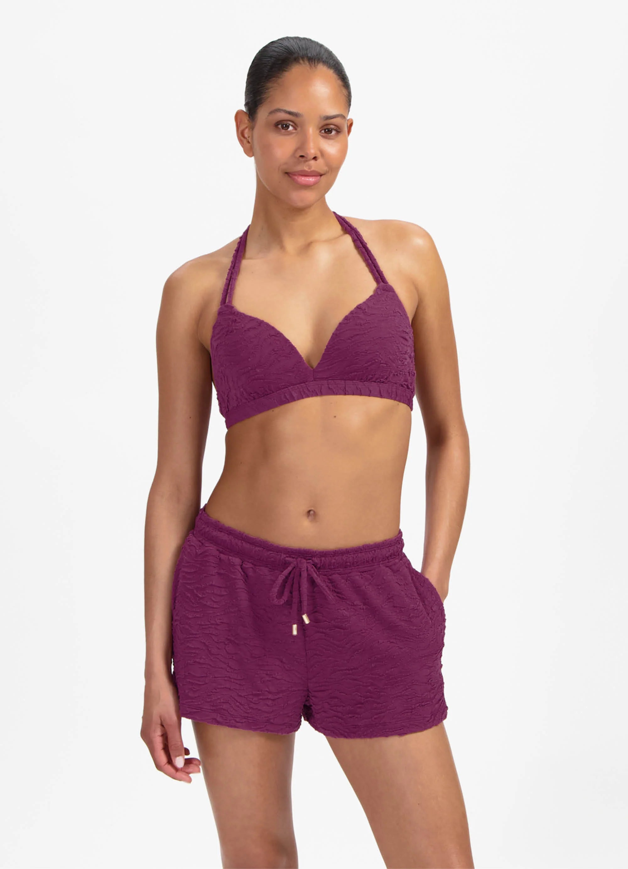 Beachlife-106A - Bright Plum halter bikinitop met beugel