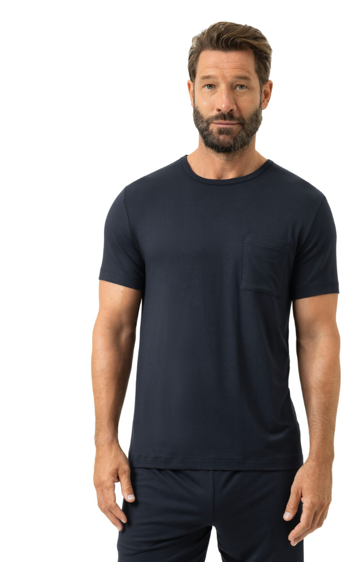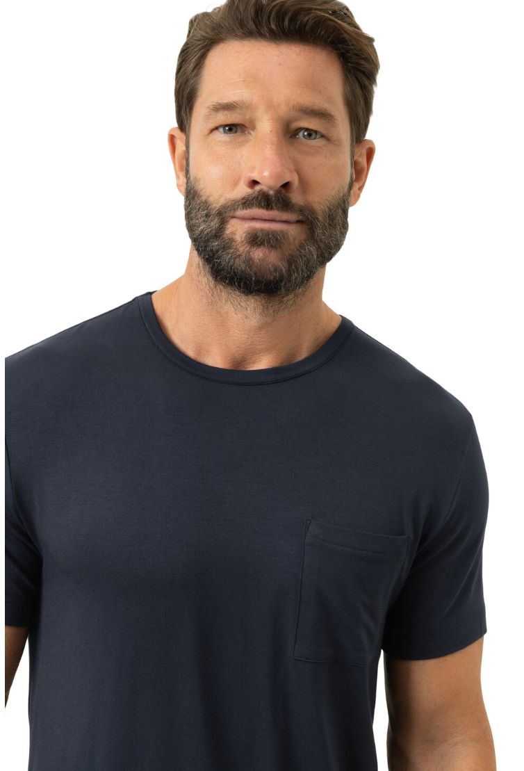 Elegant en luxueus T-shirt uit de Jefferson-serie van zachte modal-elastaanstof, met ronde hals, korte mouwen en subtiele borstzak. De relaxte pasvorm en ademende, huidvriendelijke stof zorgen voor optimaal comfort, ideaal als nachtkleding of stijlvolle homewear. Duurzaam gecertificeerd (Oeko-Tex® Standard 100 / Made in Green) en onderhoudsvriendelijk: machinewasbaar op 40 °C, geschikt voor de droger.