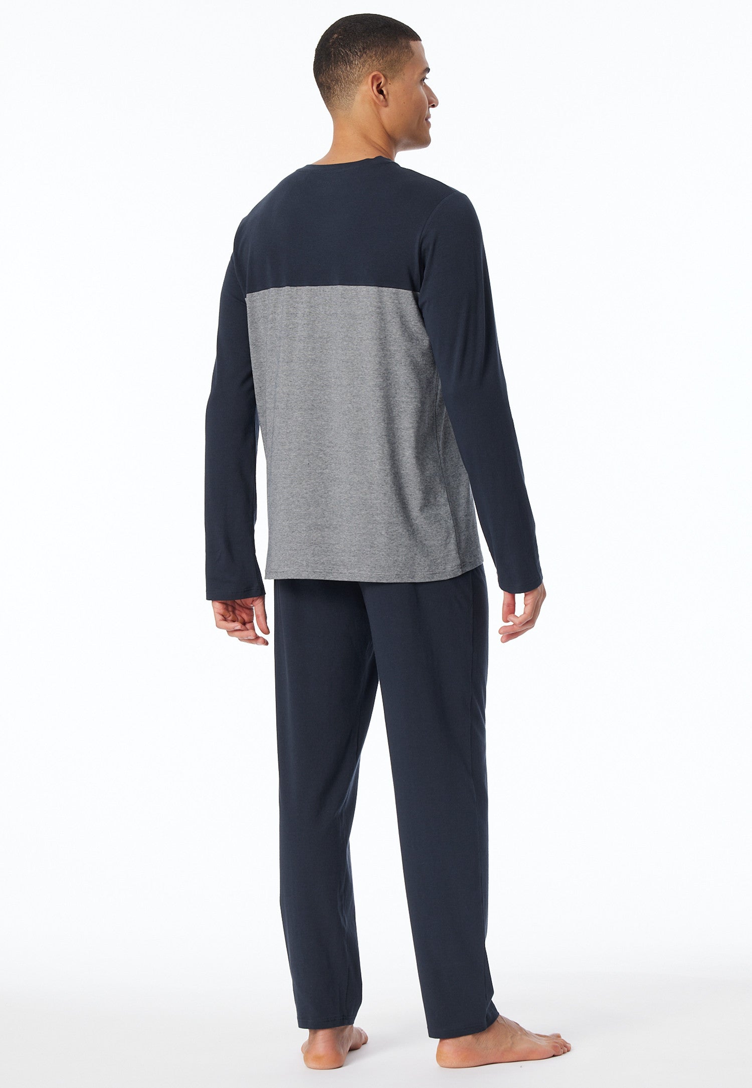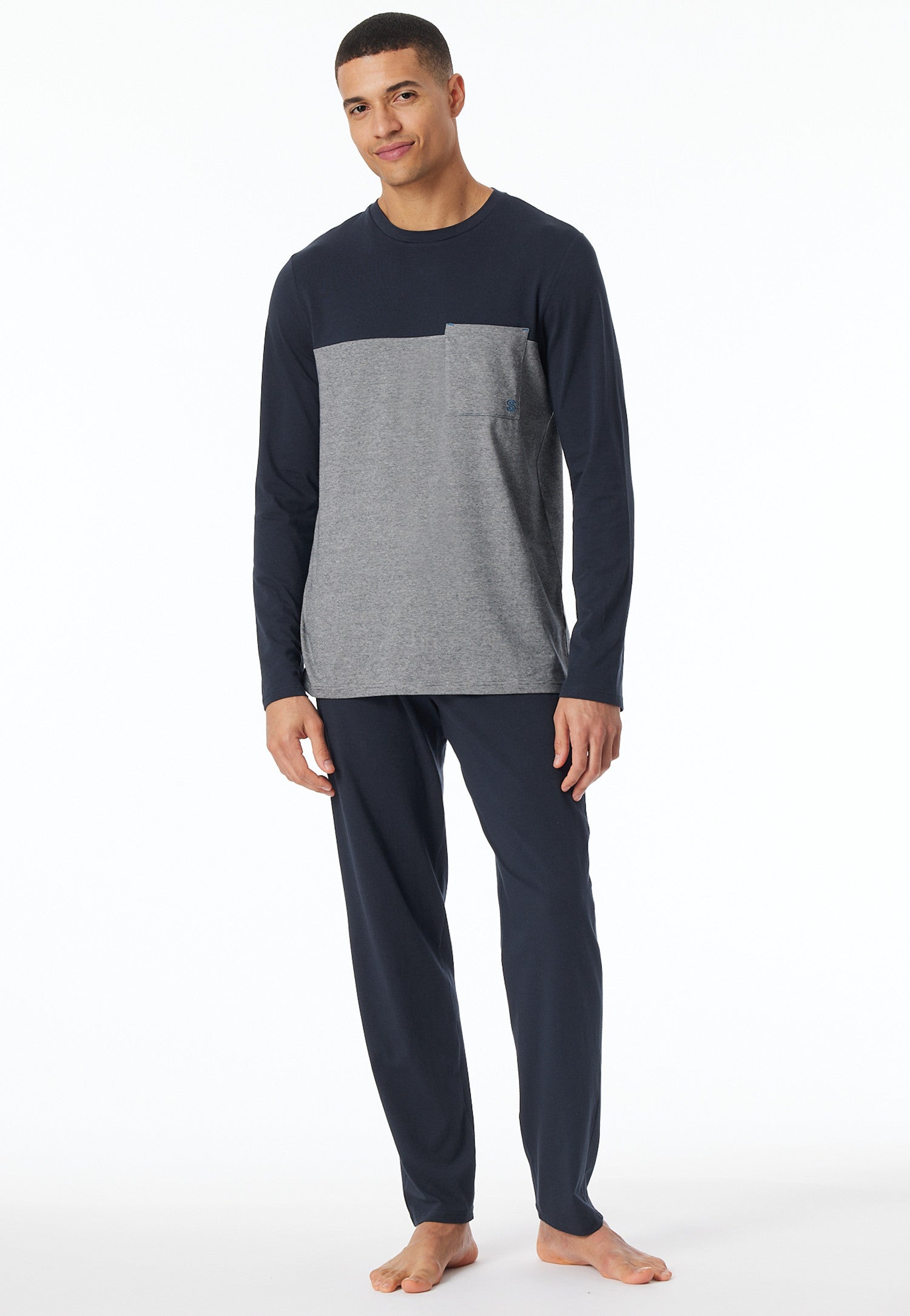 181170 Schiesser Heren Pyjama lang Organic Cotton strepen borstzak antraciet