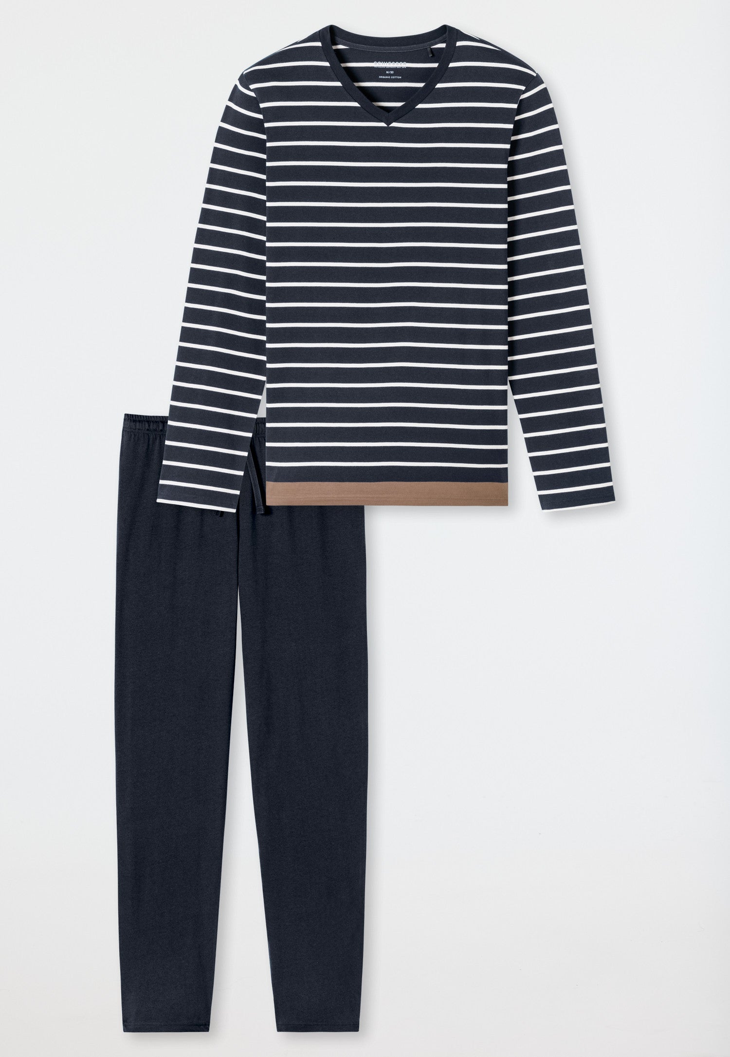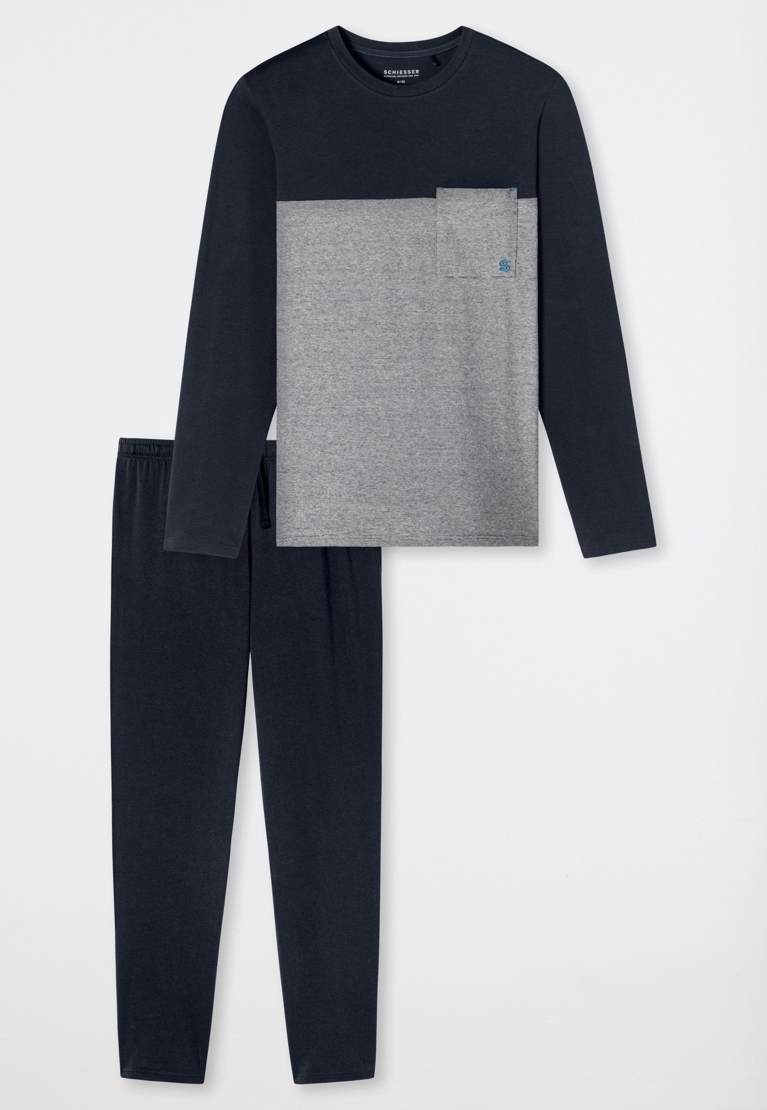 181170 Schiesser Heren Pyjama lang Organic Cotton strepen borstzak nachtblauw