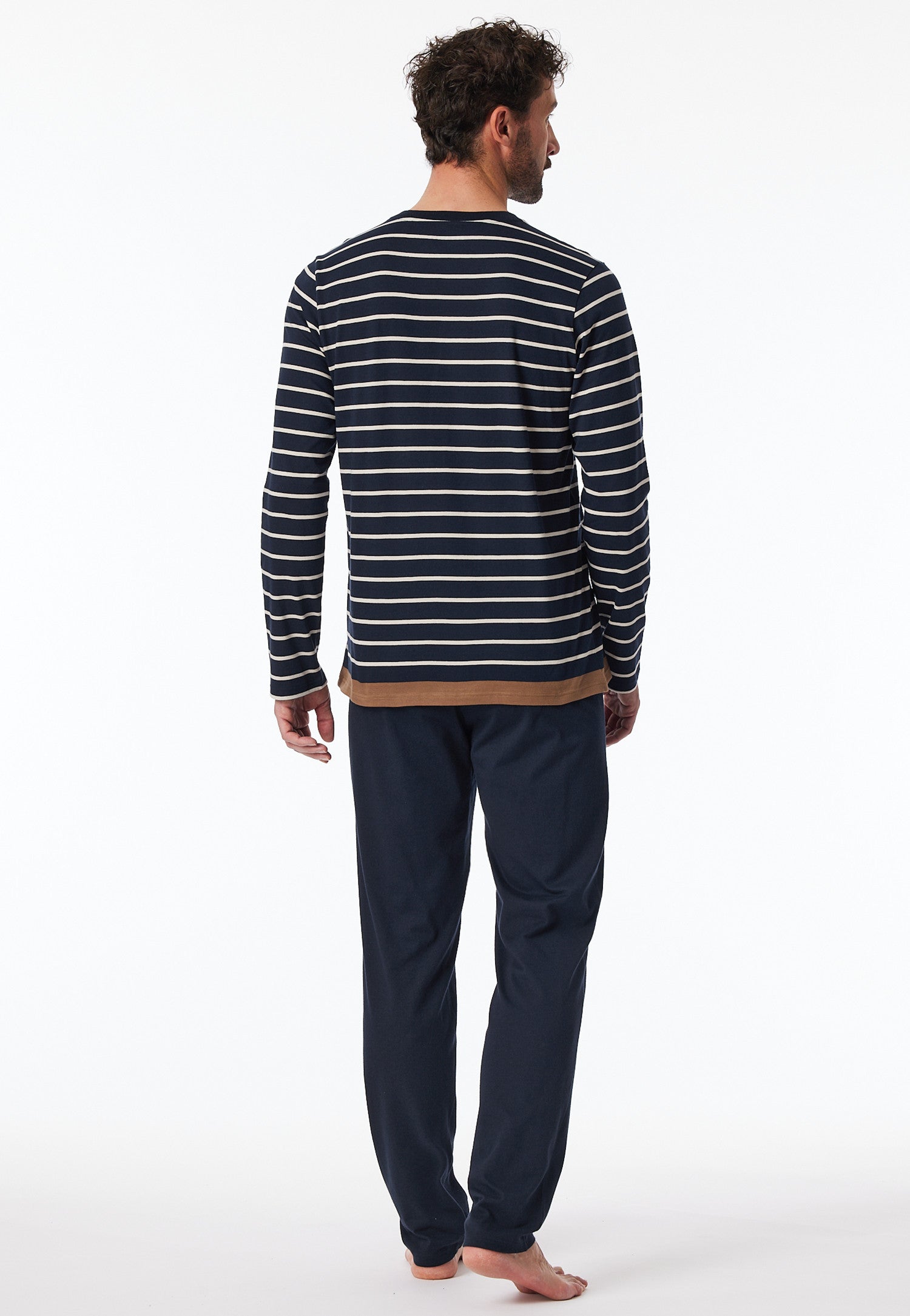 181928 Schiesser Heren Pyjama lengte strepen nachtblauw