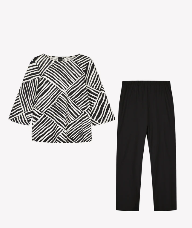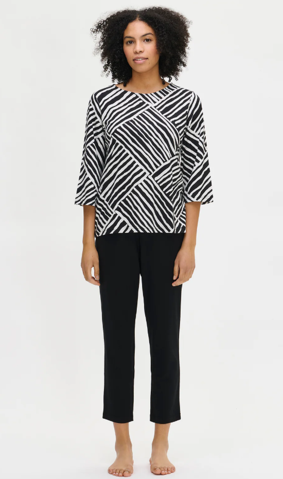 Nanso Kaisli Dames Pyjama – 3/4 Mouwen, Zwart-Wit Patroon