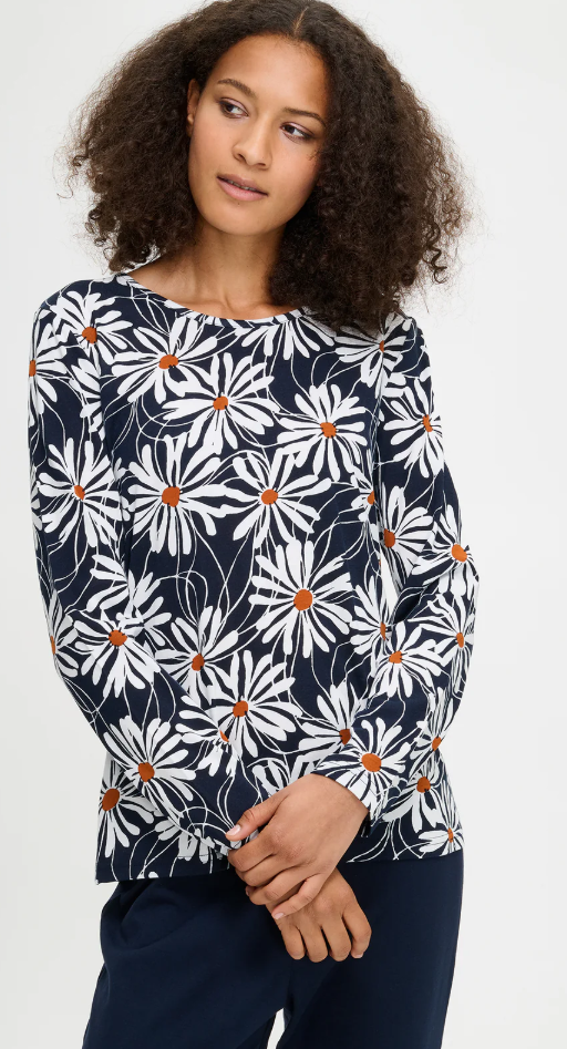Nanso Anette Dames Pyjama – Lange Mouwen, Bloemmotief, Blauw