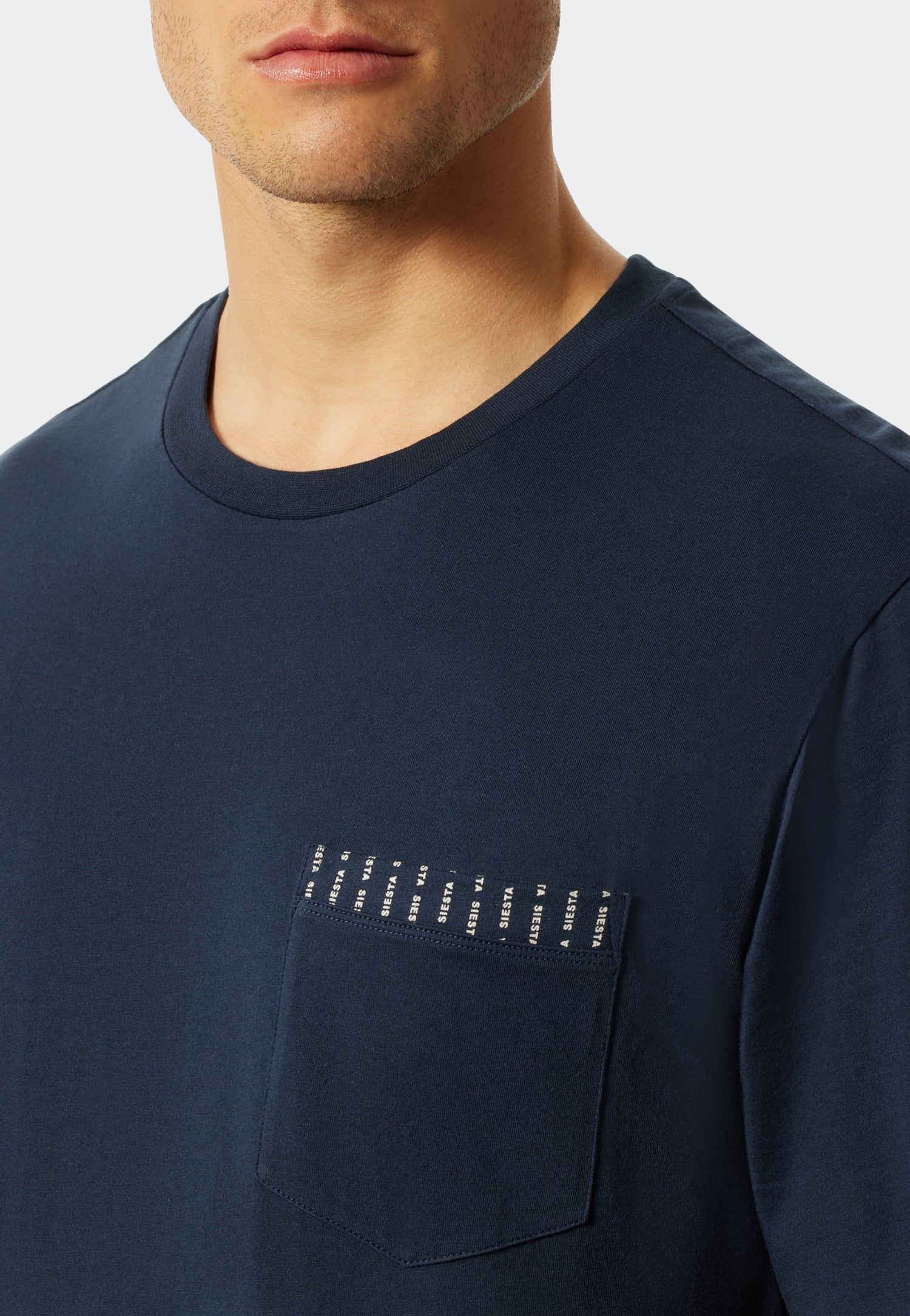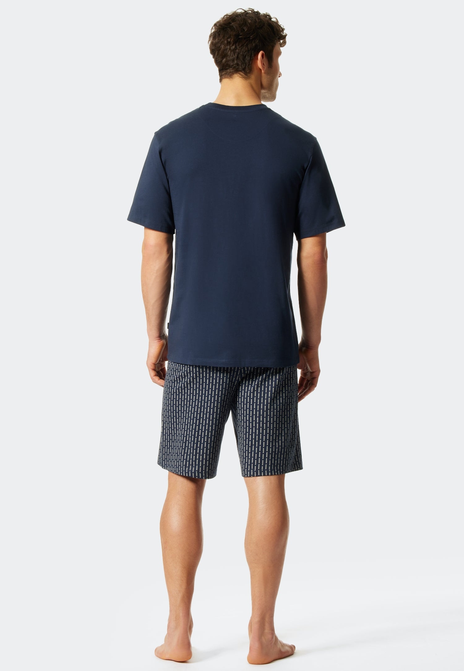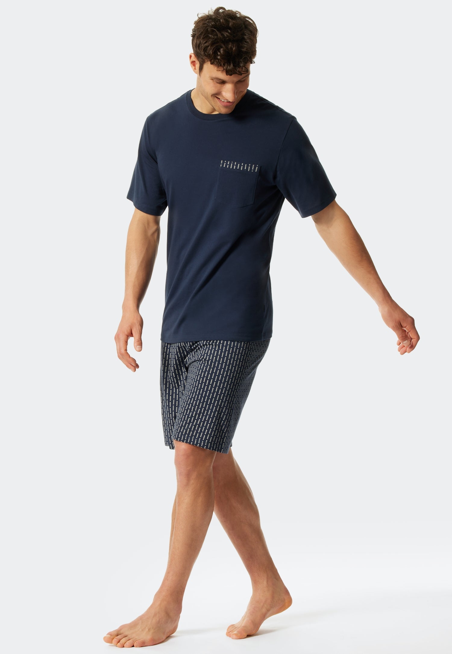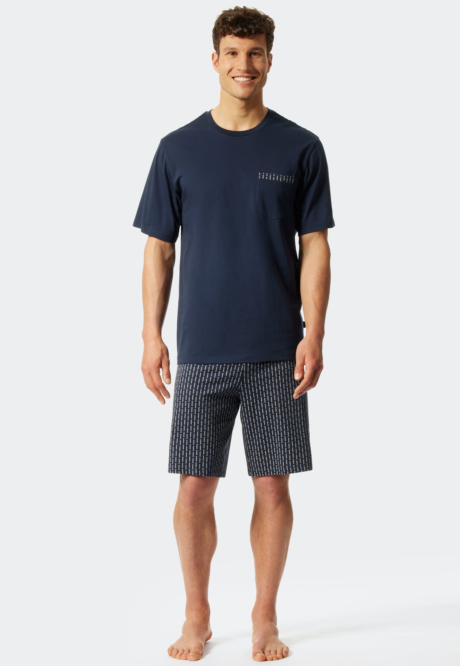 "Doe een siesta", en trakteer uzelf op een welverdiende pauze. Dat lukt zonder problemen in deze korte herenpyjama. Dankzij de hoogwaardige single-jersey van 100% biologisch katoen is het sportieve tweedelige kledingstuk van uitstekende SCHIESSER-kwaliteit erg comfortabel. Het donkerblauwe shirt met korte mouwen en een mannelijke V-hals heeft een modieus detail met de versierde borstzak. Een echte blikvanger is het opschrift "Siesta", dat is verspreid over de korte broek, die ook donkerblauw is.