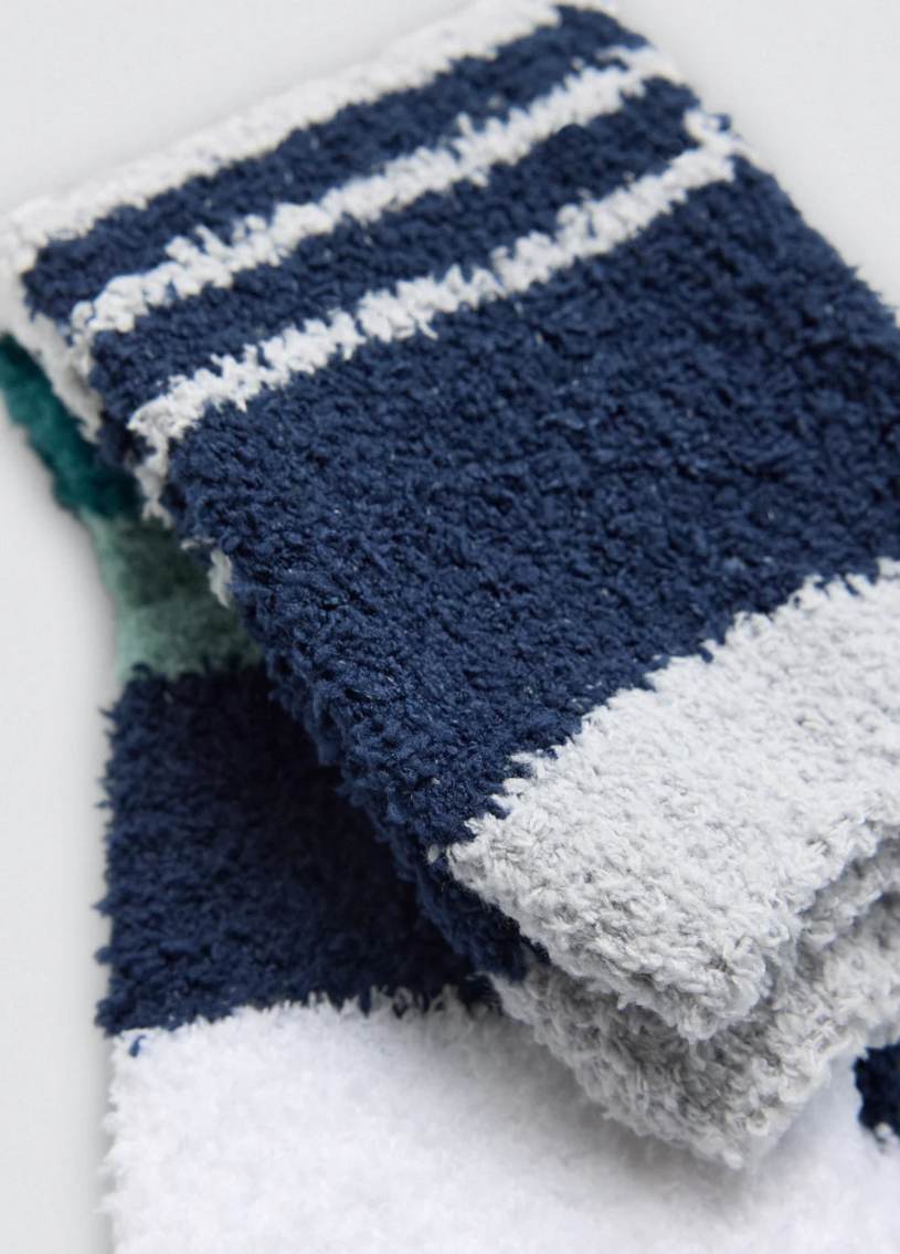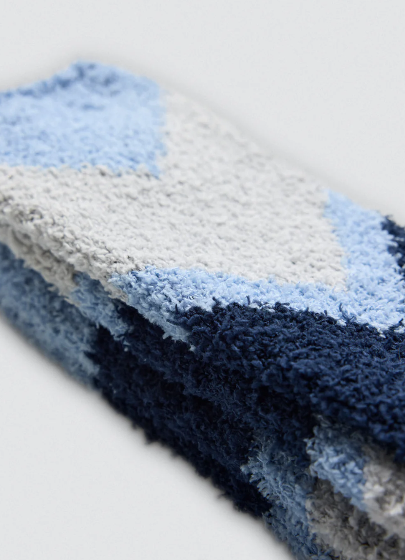 Warme en comfortabele herensokken van zachte, extra-fluffy flanel met een subtiel geometrisch dessin. Het anti-druk boord zorgt voor een perfecte pasvorm zonder knellen, ideaal voor ontspannen en warme voeten de hele dag.
